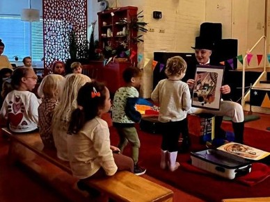Pietepaf door Luna Lunettes. De voorstelling gaat over een hondje en een rode doosje, over de gekke
